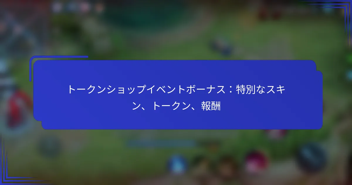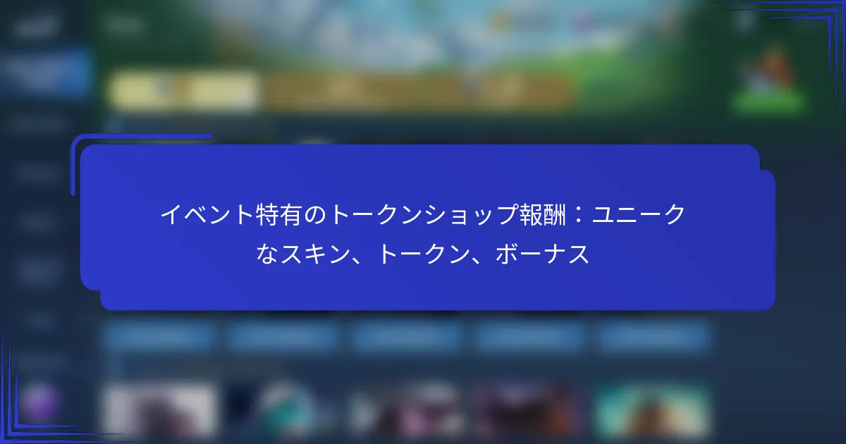 トークンショップイベントは、プレイヤーが独占的なスキン、報酬、その他のゲーム内アイテムと交換できるトークンを獲得するためのエキサイティングな機会です。さまざまなボーナスや期間限定オファーが用意されており、このイベントは参加を促し、さまざまなタスクやイベントを通じてエンゲージメントを報いることで、ゲーム体験を向上させます。 トークンショップイベントとは何ですか? トークンショップイベントは、プレイヤーが独占的なスキン、報酬、その他のゲーム内アイテムと交換するためのトークンを獲得できる特別なプロモーション期間です。このイベントは、ユニークなインセンティブや期間限定オファーを提供することで参加を促し、ゲーム体験を向上させます。 イベントの構造と目的の概要 トークンショップイベントは、プレイヤーがゲームプレイを通じてトークンを獲得する機会を提供することで、プレイヤーを引き込むように設計されています。これらのトークンは、このイベント以外では入手できない特別なスキンや報酬をアンロックするために使用できます。主な目標は、コミュニティの関与を促進し、献身的なプレイヤーを報いることです。 イベント中、プレイヤーはトークン獲得に貢献するさまざまなアクティビティやチャレンジに参加できます。この構造は、ゲームプレイを奨励するだけでなく、独占的なコンテンツを導入することでゲーム全体の楽しさを向上させます。 参加のための期間と重要な日付 トークンショップイベントは通常、限られた期間に実施され、数週間にわたることが多いです。プレイヤーは、特定の開始日と終了日について公式発表に注意を払う必要があります。これらの日付はイベントごとに異なる場合があります。一般的に、これらのイベントは季節のアップデートやゲーム内の特別な機会に合わせてスケジュールされています。 参加のための重要な日付は、ゲームの公式チャンネル、ソーシャルメディアやゲームのウェブサイトに通常強調表示されます。プレイヤーは、トークンや報酬を獲得する機会を逃さないようにカレンダーに印を付けることをお勧めします。 プレイヤーの参加資格要件 トークンショップイベントに参加するには、プレイヤーは特定の資格基準を満たす必要があります。通常、これにはアクティブなアカウントを持ち、ゲーム内で特定のレベルに達することが含まれます。一部のイベントでは、トークン獲得の資格を得るためにプレイヤーが予備のタスクやミッションを完了することを要求する場合もあります。 プレイヤーは、適用される可能性のある追加要件についてイベントガイドラインを確認する必要があります。これには、地域やプラットフォームに基づく制限が含まれる場合があり、すべての参加者が公平に参加し、報酬を獲得できるようにしています。 イベント中のトークンショップへのアクセス方法 イベント中のトークンショップへのアクセスは簡単です。プレイヤーは、ゲームのメインメニューからショップに移動でき、イベント専用のセクションが目立つように表示されます。このセクションでは、利用可能なアイテムと各アイテムに必要なトークンの数が表示されます。 トークンショップに入ると、プレイヤーは独占的なスキンや報酬を閲覧できます。提供内容はイベント中に変更される可能性があるため、定期的にチェックすることをお勧めします。これにより、獲得したトークンを使う新しい機会が得られます。 イベント特有のルールとガイドライン 各トークンショップイベントには、プレイヤーが従うべき独自のルールとガイドラインがあります。これらのルールは通常、トークンの獲得方法、利用可能な報酬の種類、および購入に関する制限を概説しています。これらのガイドラインを理解することは、参加と報酬を最大化するために重要です。 プレイヤーはまた、トークンの有効期限やアイテム交換に関する制限など、潜在的な落とし穴に注意する必要があります。イベントルールについて情報を得ておくことで、プレイヤーはトークン獲得を最大限に活用し、望ましい報酬を逃すことを避けることができます。 トークンショップイベントで利用可能なボーナスと報酬は何ですか? トークンショップイベントでは、特別なスキン、さまざまな種類のトークン、追加のゲームプレイ強化など、さまざまなボーナスと報酬が提供されます。プレイヤーは、ゲーム体験を向上させるユニークなスキンやトークンを獲得でき、希少性や有用性に基づいてさまざまな報酬を得ることができます。 特別なスキンとその属性のリスト トークンショップには、キャラクターのカスタマイズを向上させるユニークな属性を持つ特別なスキンのエキサイティングなセレクションがあります。これらのスキンは、しばしば独特の視覚効果やアニメーションを伴い、ゲームプレイをより魅力的にします。入手可能性は異なる場