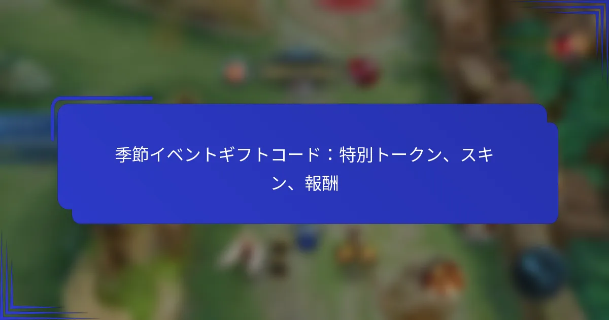 季節イベントのギフトコードは、特定の時期にプレイヤーが独自のゲーム内報酬と引き換えられるユニークなトークンです。これらのコードは、特別なアイテム、スキン、ボーナスへのアクセスを提供し、全体的なゲーム体験を向上させます。アクティブなコードを見つけるには、プレイヤーは公式ゲームウェブサイト、ソーシャルメディア、コミュニティフォーラムをチェックして最新の更新情報や報酬を確認する必要があります。 季節イベントのギフトコードとは? 季節イベントのギフトコードは、特定の時期に提供される特別なトークンで、プレイヤーがゲーム内報酬と引き換えられるものです。これらのコードは、通常は入手できない独占的なアイテム、スキン、またはボーナスをプレイヤーに提供することで、ゲーム体験を向上させます。 ギフトコードの定義と目的 ギフトコードは、プレイヤーがゲームの引き換えシステムに入力してさまざまな報酬を受け取るための英数字の文字列です。これらは、休日、記念日、またはゲームのマイルストーンを祝うために、季節イベント中にリリースされることがよくあります。これらのコードの主な目的は、プレイヤーを引き込んで特別な機会にゲームへの参加を促すことです。 プレイヤーに無料の報酬を提供することで、開発者はプレイヤーの定着率と満足度を向上させることができます。ギフトコードはマーケティングツールとして機能し、新しいコンテンツや機能に注目を集めながら、忠実なプレイヤーに対して継続的な参加を報いるものです。 季節イベントの種類 季節イベントは幅広く異なりますが、通常は休日や重要な日付に関連しています。一般的な種類には、ハロウィンイベント、クリスマスのお祝い、夏祭りなどがあります。各イベントには通常、独自のテーマと関連する報酬があります。 他の種類のイベントには、ゲームの記念日、特別なコラボレーション、またはコミュニティ主導のチャレンジが含まれる場合があります。これらのイベントは、期間限定のコンテンツを特徴とし、プレイヤーがプロモーション期間中に積極的に参加することを促します。 ギフトコードに関連する一般的な報酬 ギフトコードは、ゲームプレイを向上させたり、外観のアップグレードを提供したりするさまざまな報酬をアンロックすることができます。一般的な報酬には以下が含まれます: 独占的なスキンやキャラクターの衣装 ゲーム内通貨やリソース 特別なアイテムや武器 経験値ブーストやレベルアップの補助 これらの報酬は、プレイヤーの体験を向上させるだけでなく、ゲーム内でのパーソナライズを可能にします。プレイヤーは、季節イベントへの参加を示すユニークなアイテムのためにコードを引き換えることを楽しみにしています。 ギフトコードがゲーム体験を向上させる方法 ギフトコードは、プレイヤーに特別なイベント中にログインして参加するインセンティブを提供することで、ゲーム体験を向上させます。プレイヤーが新しいコードとそれに伴う報酬を待つ中で、興奮と期待感を生み出します。このエンゲージメントは、より活気のあるゲームコミュニティにつながる可能性があります。 さらに、ギフトコードは新しいプレイヤーに、通常は取得に時間がかかるリソースやアイテムへのアクセスを提供することで、競争の場を平等にするのに役立ちます。このアクセスのしやすさは、新規プレイヤーとベテランプレイヤーの両方にとってゲームをより楽しめるものにします。 人気の季節イベントの例 いくつかの季節イベントは、魅力的なコンテンツと報酬で知られ、ゲームコミュニティの定番となっています。たとえば、ハロウィンイベントはしばしば不気味なテーマ、独占的なコスチューム、テーマに沿ったチャレンジを特徴とします。クリスマスイベントには、通常、祝祭の装飾、ギフト交換、特別なクエストが含まれます。 他の注目すべきイベントには、ビーチをテーマにしたコンテンツやコミュニティチャレンジで季節を祝う夏祭りがあります。ゲームの記念日には、ファンのお気に入りの機能やキャラクターが復活し、マイルストーンを祝うためのユニークな報酬が提供されることがよくあります。 アクティブな季節イベントのギフトコードを見つける方法は? アクティブな季節イベントのギフトコードを見つけるには、これらのコードが共有されるさまざまなソースを監視する必要があります。公式ゲームウェブサイト、ソーシャルメディアプラットフォーム、コミュニティフォーラムは、最新のコードや報酬を発見するための優れた出発点です。 公式ゲームウェブサイトとソーシャルメディア 公式ゲームウェブサイトは、季節イベントのギフトコードの最も信頼できるソースです。開発者は、特に主要なイベント中に新しいコードに関する発表を直接サイトに投稿することがよくあります。ゲームの公式ソーシャルメディアアカウントをフ