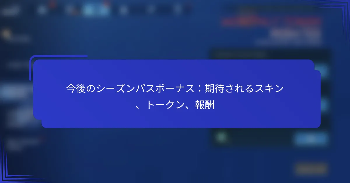 シーズンパスプレミアム報酬は、プレイヤーがシーズンパスを購入することで、独占的なゲーム内アイテムやボーナスをアンロックするチャンスを提供します。これらの報酬には、プレイヤーのカスタマイズを強化するユニークなスキンや、追加のゲームプレイ特典と引き換えられるトークンが含まれており、競争上の優位性とよりパーソナライズされたゲーム体験を提供します。 シーズンパスプレミアム報酬とは? シーズンパスプレミアム報酬は、プレイヤーがシーズンパスを購入することで得られる独占的なゲーム内アイテムやボーナスです。これらの報酬には、ユニークなスキン、トークン、ゲームプレイの強化が含まれ、プレイヤーに競争上の優位性とよりパーソナライズされたゲーム体験を提供します。 シーズンパスプレミアム報酬の定義 シーズンパスは、プレイヤーが特定の期間にわたってさまざまな報酬をアンロックできる有料機能で、通常はゲームシーズンに合わせて設定されています。プレミアム報酬は、プレイヤーがプレミアムバージョンのパスを選択することでアクセスできる上位の特典です。これらの報酬は、全体的なゲーム体験を向上させ、無料プレイヤーが得られない独占的なコンテンツを提供するように設計されています。 シーズンパスを購入したプレイヤーは、シーズンを進めるにつれてアンロックされる構造化された報酬セットにアクセスできます。この進行は、チャレンジをクリアしたり経験値を獲得したりすることに関連していることが多く、プレイヤーがゲームにより深く関与するための動機付けとなります。 含まれる報酬の種類 シーズンパスプレミアム報酬には、通常、さまざまな独占アイテムやボーナスが含まれます。一般的な報酬の種類には以下が含まれます: 独占スキン:標準的なゲームプレイでは入手できないユニークなキャラクターや武器のスキン。 トークン:追加のアイテムやアップグレードを購入するために使用できるゲーム内通貨やトークン。 ボーナス:ゲームプレイを強化する経験値の倍増や資源ボーナスなどの一時的なブースト。 これらの報酬は、カスタマイズを可能にするだけでなく、ゲーム内でのパフォーマンスを向上させる具体的な利益も提供します。 報酬がゲームプレイを強化する方法 シーズンパスからの報酬は、プレイヤーにユニークなカスタマイズオプションやゲームプレイの利点を提供することで、ゲームプレイを大幅に強化できます。独占スキンは、プレイヤーが自分の個性を表現できるようにし、ゲーム体験をより楽しく没入感のあるものにします。 さらに、経験値の倍増などのボーナスは、プレイヤーの進行を加速させ、高いレベルに到達したり新しいコンテンツをより早くアンロックしたりすることを可能にします。これにより、プレイヤーはシーズンを通じて達成感や成長を感じることができ、より魅力的な体験が生まれます。 報酬の期間と入手可能性 シーズンパスプレミアム報酬は通常、ゲームシーズンの期間に合わせて限られた時間のみ利用可能です。ほとんどのシーズンは数週間から数ヶ月続き、その間にプレイヤーはチャレンジをクリアしたりレベルアップしたりすることで報酬を獲得できます。シーズンが終了すると、報酬は通常入手できなくなり、プレイヤーに参加する緊急性を生み出します。 一部のゲームでは過去のシーズンパスを購入するオプションを提供する場合がありますが、これは常に保証されるわけではありません。プレイヤーは新しいシーズンに関する発表を注視し、独占的な報酬を逃さないようにする必要があります。 報酬を獲得するための要件 シーズンパスプレミアム報酬を獲得するには、プレイヤーは通常、プレミアムパスを購入し、特定のゲーム内チャレンジや目標を達成する必要があります。これらの要件はゲームやシーズンによって大きく異なる場合がありますが、通常は試合に勝つ、特定のスコアを達成する、またはデイリーミッションを完了するなどのタスクが含まれます。 プレイヤーは、報酬を獲得するチャンスを最大化するために、自分の進行状況や利用可能なチャレンジを定期的に確認する必要があります。シーズンを通じて関与し続けることが重要であり、一部の報酬は完全にアンロックするために継続的な参加を必要とする場合があります。 シーズンパスで入手できる独占スキンは? シーズンパスでは、プレイヤーのカスタマイズとエンゲージメントを強化するさまざまな独占スキンが提供されます。これらのスキンは、季節のテーマを反映したユニークなデザインを特徴としており、プレイヤーがゲーム内で自分のアイデンティティを表現できるようにします。 独占スキンの概要 シーズンパスの独占スキンは、プレイヤーがシーズンを進めるにつれてアンロックできる特別にデザインされたキャラクターの衣装です。各スキンは通常、季節のテーマに合わせており、定期的に変化す