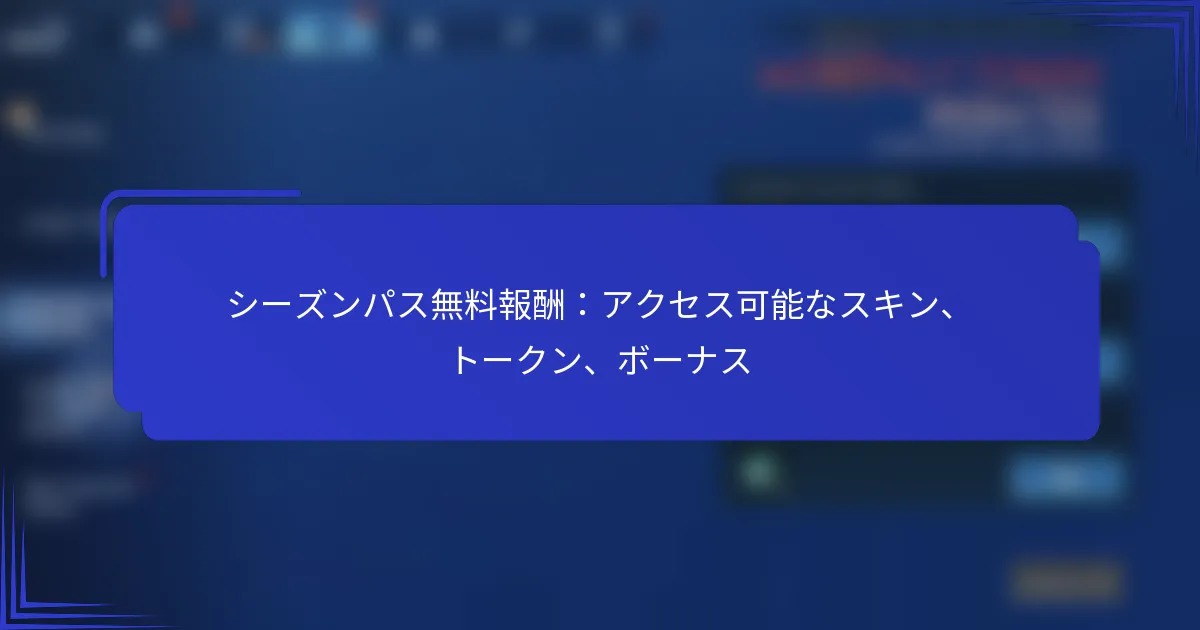 シーズンパスは、プレイヤーにスキン、トークン、ゲームプレイボーナスなどのさまざまな無料報酬を提供し、ゲーム体験を向上させることを目的としています。特定のゲーム内タスクやチャレンジを完了することで、プレイヤーはこれらの報酬をアンロックでき、プレイ中のカスタマイズやアドバンテージを高めることができます。シーズンパスシステムに参加することで、ゲームプレイが豊かになるだけでなく、貴重なゲーム内通貨やボーナスを獲得する機会も得られます。 シーズンパスで利用できる無料報酬は何ですか? シーズンパスでは、スキン、トークン、ゲームプレイボーナスなど、さまざまな無料報酬が提供されます。これらの報酬は、視覚的なカスタマイズオプション、ゲーム内通貨、プレイ中のアドバンテージを提供することで、ゲーム体験を向上させます。 現在のシーズンでアクセス可能なスキンの種類 今シーズンでは、プレイヤーが無料でアンロックできるさまざまなスキンが用意されています。これらのスキンは、キャラクターやアイテムのパーソナライズを可能にし、ゲームプレイを視覚的に魅力的にします。 キャラクタースキン:プレイ可能なキャラクターのユニークなデザイン。 武器スキン:さまざまな武器のカスタム外観。 車両スキン:ゲーム内の車両の独特な外観。 各スキンタイプは異なるテーマや美学を反映するように設計されており、プレイヤーがシーズンを通じて収集することを促します。プレイヤーは試合中にお気に入りのスキンを披露し、ゲームプレイに個人的なタッチを加えることができます。 利用可能なトークンとその用途 トークンはシーズンパスの重要な要素であり、さまざまな目的に使用できるゲーム内通貨として機能します。プレイヤーはゲームプレイや特定のチャレンジを完了することでトークンを獲得できます。 トークンタイプ 用途 スタンダードトークン スキンやボーナスを購入。 イベントトークン 期間限定の報酬と引き換え。 スタンダードトークンはスキンやボーナスを取得するために使用でき、イベントトークンは通常、季節イベントに関連しており、後で入手できないかもしれない独占的な報酬を提供します。トークンの使用を効果的に管理することで、全体的なゲーム体験を向上させることができます。 ボーナスとゲームプレイへの影響 ゲームプレイボーナスは、プレイヤーのパフォーマンスを大幅に向上させる追加の報酬です。これらのボーナスには、経験値のブースト、増加したルートドロップ、または一時的なパワーアップが含まれる場合があります。 たとえば、経験値のブーストはプレイヤーがより早くレベルアップするのを助け、増加したルートドロップはより良い装備やリソースへのアクセスを提供します。これらのボーナスを戦略的に活用することで、ゲームプレイの結果を改善できます。 プレイヤーは、困難なミッションや競技マッチなどの重要なゲームプレイの瞬間にボーナスを獲得し、アクティブ化することを優先して、効果を最大限に引き出すべきです。 報酬の視覚的表現 シーズンパスにおける報酬の視覚的表現は、魅力的で情報を提供するように設計されています。プレイヤーは自分の進捗を簡単に追跡し、各ティアで利用可能な報酬を確認できます。 通常、インターフェースはスキン、トークン、ボーナスを魅力的なグラフィックと明確な説明で表示します。この視覚的な明確さは、プレイヤーが何を獲得できるかを理解するのに役立ち、シーズンパスを通じての進行を続ける動機付けになります。 前シーズンの報酬との比較 前のシーズンと比較して、現在のシーズンパスはより多様な無料報酬を提供しています。プレイヤーは、より多様なスキンやより価値のあるボーナスを期待でき、パスの全体的な魅力が向上します。 過去のシーズンは主にキャラクタースキンに焦点を当てていたかもしれませんが、今シーズンは視覚的な報酬とゲームプレイの向上のバランスの取れたミックスを含んでいます。このシフトはプレイヤーのフィードバックを反映しており、ゲーム体験の向上を目指しています。 全体として、シーズンパスにおける無料報酬の進化は、プレイヤーにとって意味のある楽しいコンテンツを提供することへのコミットメントを示しており、各シーズンを新鮮で刺激的に感じさせます。 シーズンパスの無料報酬にアクセスするにはどうすればよいですか? シーズンパスの無料報酬にアクセスするには、さまざまなスキン、トークン、ボーナスをアンロックするために特定のゲーム内タスクを完了する必要があります。示された手順に従うことで、プレイヤーはこれらの報酬を効率的に獲得し、ゲーム体験を向上させることができます。 報酬をアンロックするためのステップバイステップガイド シーズンパスから報酬をアンロックするには、まずゲーム内のシーズンパスメニューに移動します。ここでは、利用可能
